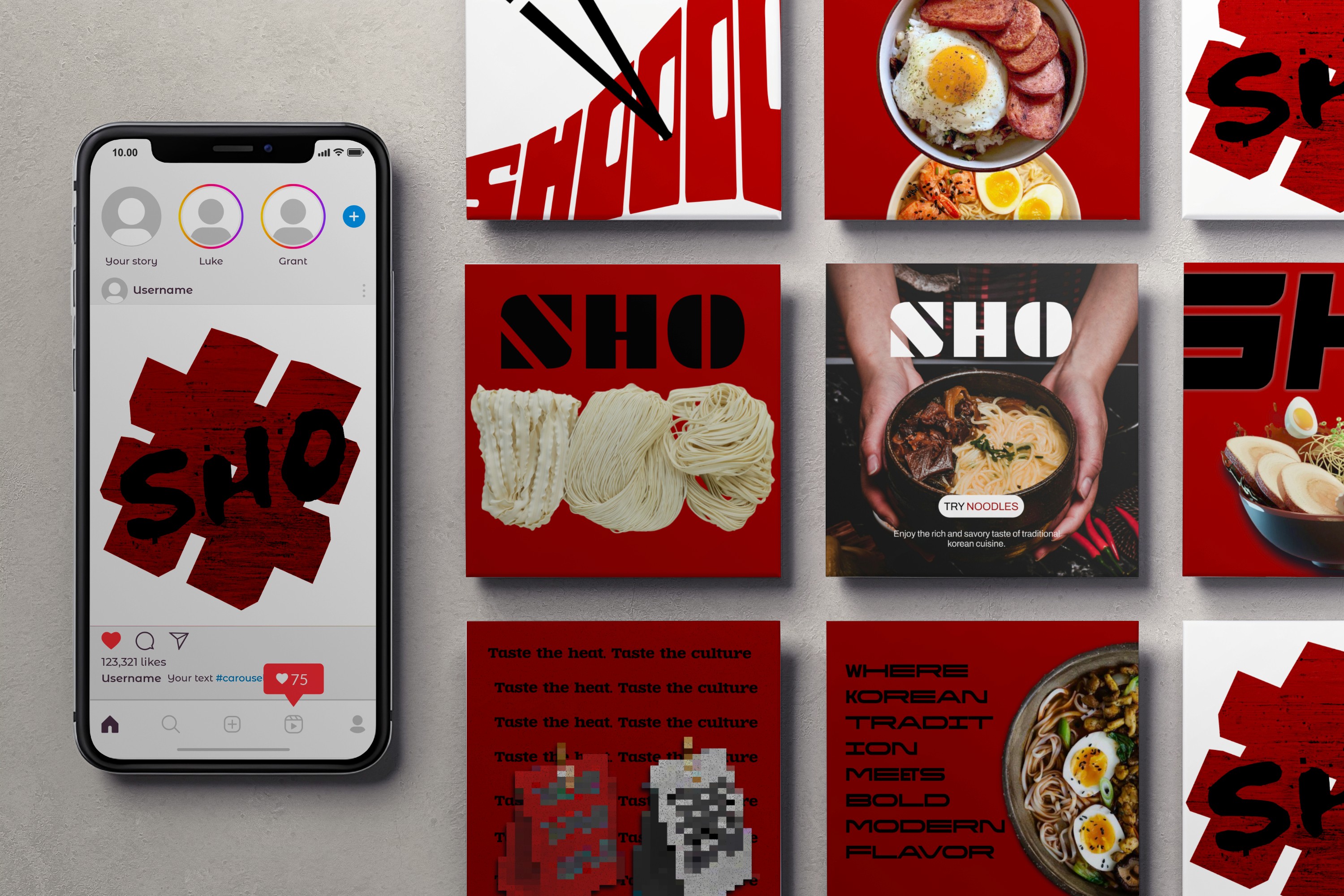 I created a complete visual identity for a noodle restaurant, including the logo, brand style, packaging, and Instagram posts. I also designed street billboards and handled Instagram promotional content to strengthen the brand’s visibility. The project highlights a cohesive and professional branding experience across digital and printed materials.